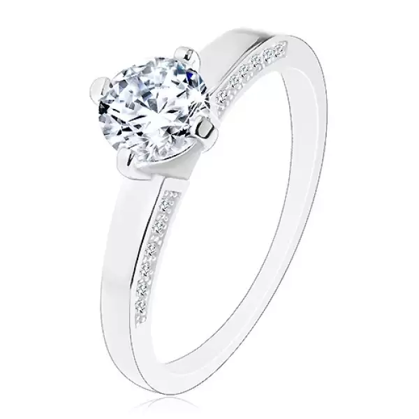 925 ezüst gyűrű, sima szárak cirkóniákkal díszítve, kerek csiszolt cirkónia átlátszó színben.