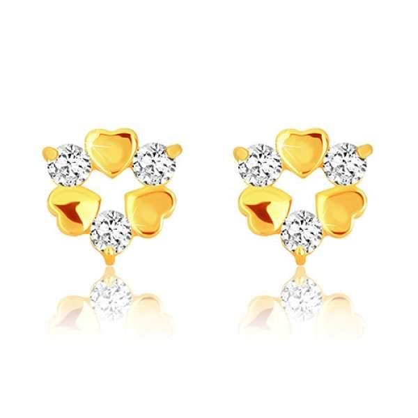 9K sárga arany fülbevaló - három szimmetrikus szív és három csillogó cirkónia