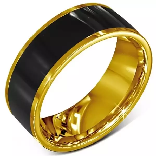 Gyűrű sebészeti acélból - sima, fekete karika, arany színű szegély - Nagyság_ 67