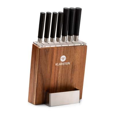 Klarstein Kitano, késkészlet tömbbel, 8 darabos, 7 kés, acél, luxus fa blokk