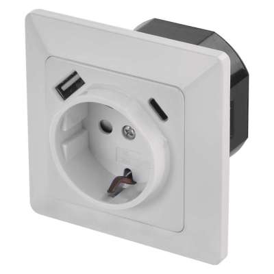 termék egyszeres dugalj védőtüskével oldalsó, szín fehér (fényes), összeszerelés módja dobozba, védettség IP20