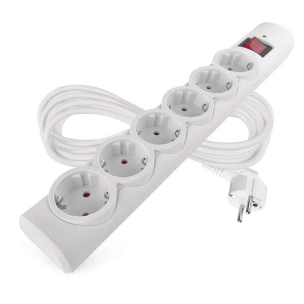 hossz 5 m, aljzatok száma 6× 2P + PE, szín fehér