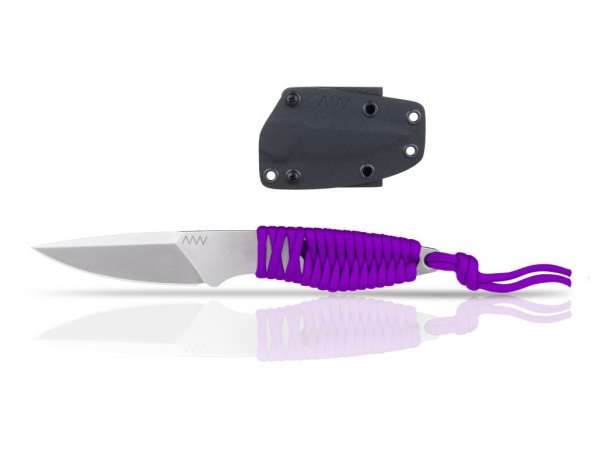 Az ANV P100 kicsi, elegáns és könnyű EDC kés (mindennapi használatra). Az ANV P100 Sleipner acélból készült, 58 HRC keménységű. 7,8 cm hosszú pengével ideális mindennapi munkákhoz. A markolat lila Paracorddal van betekerve, melynek teherbírása 280 kg (550 lb). A tok Kydex® anyagból készült, amely által nagyon könnyű és végül rendkívül tartós. A tartó rögzítése variálható, függőlegesen és vízszintesen is viselheti az övén, és a mellékelt biztonsági láncnak köszönhetően a nyakába is akaszthatja. A nyaklánc acélgolyókból készült, Gunmetal felületkezeléssel és biztonsági okokból nagy terhelés mellett elszakad. Természetesen lehetőség van az tok forgatására attól függően, hogy jobbos vagy balos. A tokot hátizsákhoz vagy más felszereléshez is rögzítheti, mivel a tok kompatibilis a MOLLE, PALS és Laser Cut rendszerekkel. A kés luxus díszdobozban érkezik. ANV kések