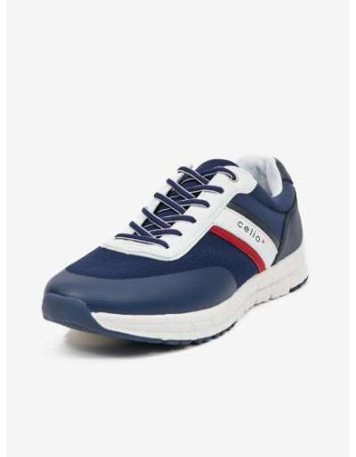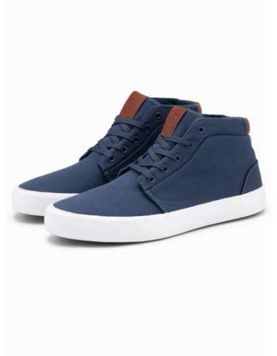 Egyszínű férfi szabadidőcipő kombinált anyagokból – sötétkék V2 OM-FOCS-0105
