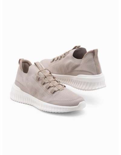 Férfi egyszínű sportcipő varrással – bézs V2 OM-FOCS-0159