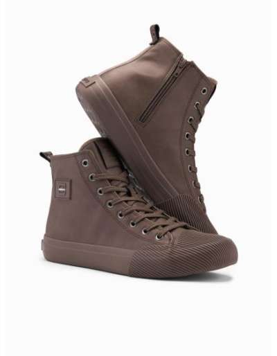 Férfi cipő magas felsőrésszel fényes öko bőrből – sötétbarna V2 OM-FOBO-0175