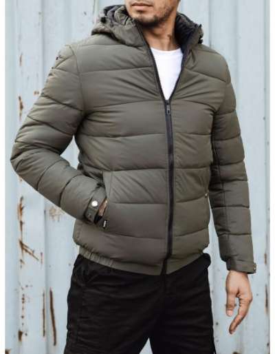 Férfi téli steppelt kabát kapucnival zöld