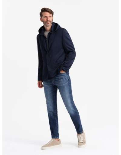 Férfi téli kabát kapucnival, sötétkék