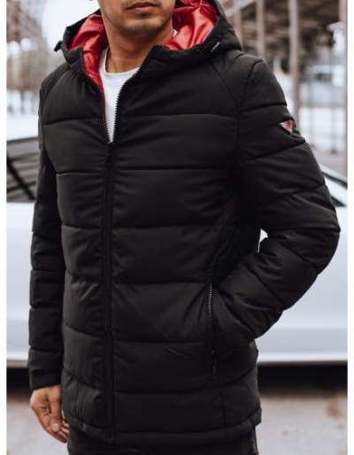 Férfi téli kabát kapucnival, fekete és piros