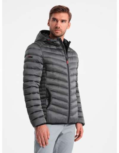 Férfi téli steppelt kabát kapucnival, grafit
