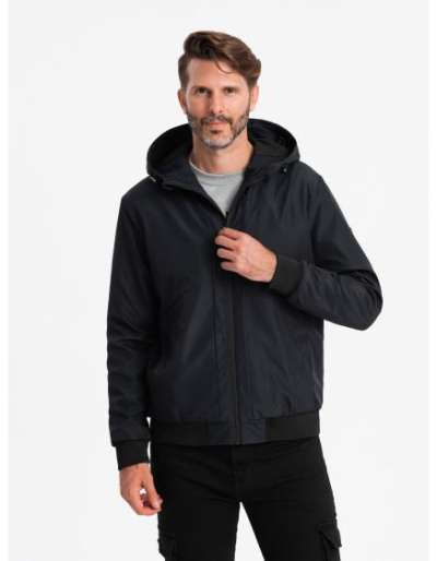 Férfi téli steppelt kabát kapucnival fekete