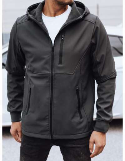Férfi átmeneti softshell kabát kapucnival sötétszürke színben