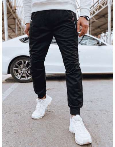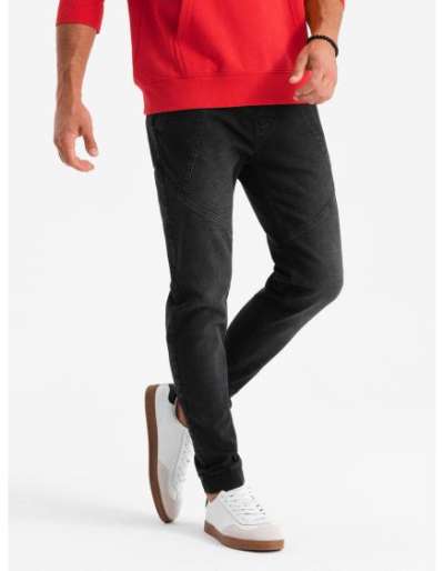 Férfi farmer tréningnadrág aszimmetrikus varrással - fekete
