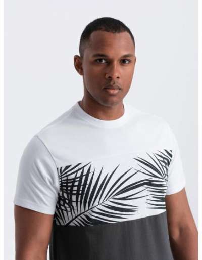 Férfi pamut póló mellkasra nyomtatott fehérrel