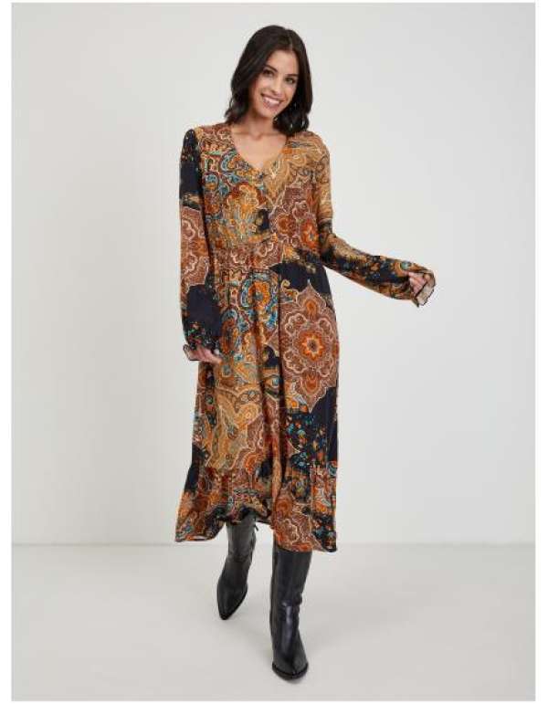 Barna női mintás midi ruha
