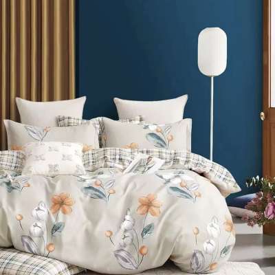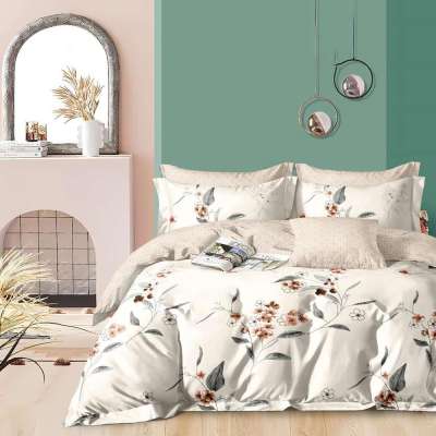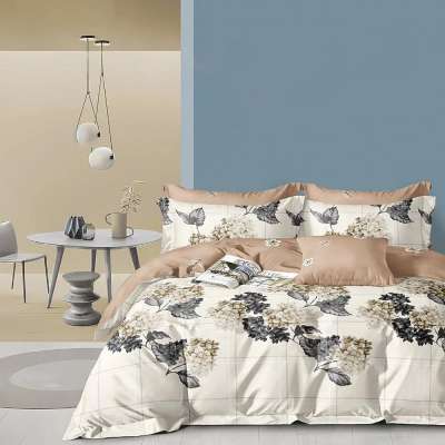 Bézs virágmintás 7 részes ágyneműhuzat