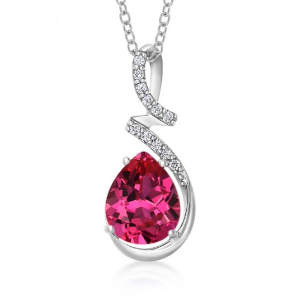 Ezüst medál cirkóniával. Anyaga: 925/1000 ezüst, a Fémjelzési törvénynek megfelelően fémjelezve, átlátszó és fukszia színű cirkóniák. Az ezüst felülete platinafém ródium felületkezeléssel rendelkezik, ami garantálja a magas fényt és a minőséget. A lánc nem része. Medál mérete: 10 x 23 mm. Súly: 2 g.
