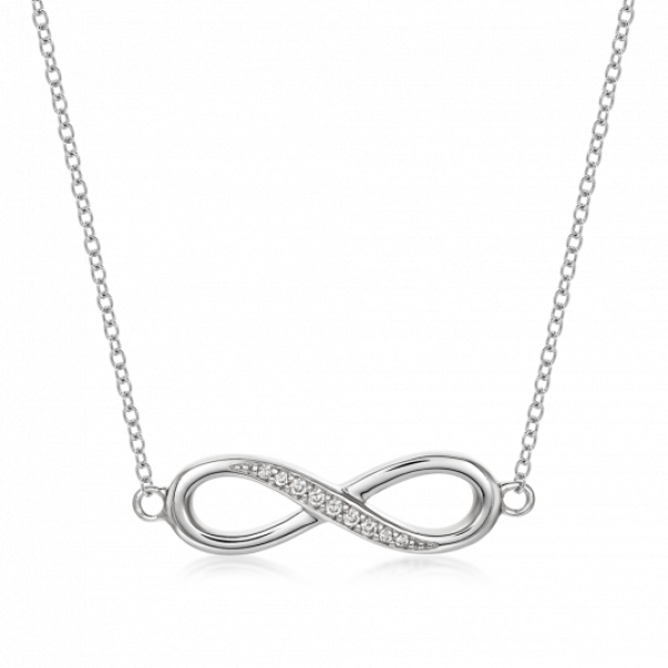Ezüst női nyaklánc "Infinity" átlátszó cirkóniákkal díszítve. Hossz: 45 cm (42 és 38 cm-re is bekapcsolható). Súly: 4 g