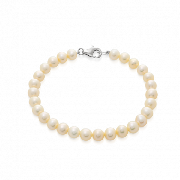 Divatos és időtlen gyöngy karkötő. Az ékszer az alkalmi és lezser stílusát is ékesítheti. Anyaga: 925/1000 ezüst, édesvíz, tenyésztett fehér gyöngy, 4,5 - 5 mm méretű. A PEARLS ékszerek kiváló minőségű édesvízi tenyésztett gyöngyökkel vannak díszítve.