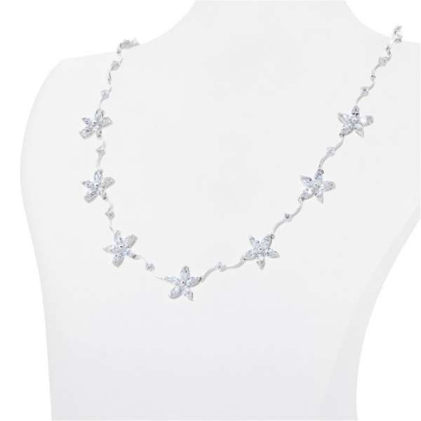 Ezüst nyaklánc cirkóniával, virágmotívummal díszítve. Anyaga: 925/1000 ezüst, a Fémjelzési törvénynek megfelelően fémjelezve, átlátszó cirkóniák. Súly: 14 g.