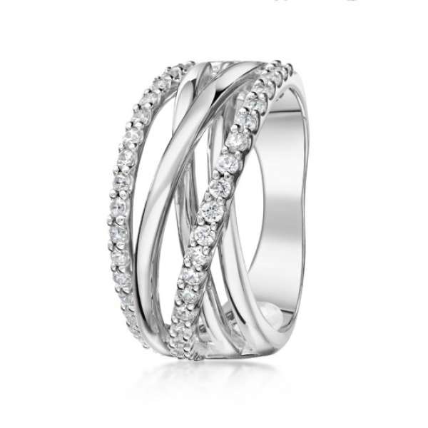 Ezüst gyűrű átlátszó cirkóniákkal. Anyaga: 925/1000 ezüst, a Fémjelzési törvénynek megfelelően fémjelezve, átlátszó cirkóniák. Súly: 6 g