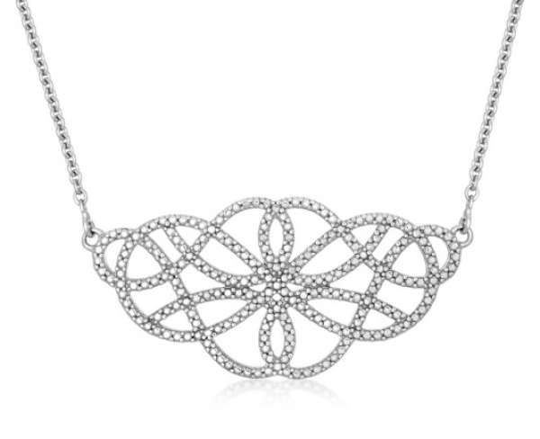 Hangsúlyos és elegáns ezüst nyaklánc ornamentummal. Hossz: 40 + 5 cm. A medál méretei: 40 x 19 mm. Súly: 6 g.