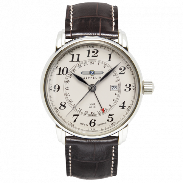Férfi Zeppelin LZ 127 Graf Zeppelin karóra. Számlap: analóg Számlap anyaga: acél Számlap átmérője: 42 mm Óraüveg_ ásványi Vízállóság_ 5 ATM (zuhany) Szíj: barna bőr Óra meghajtó: elem Óramű: Kvarc analóg