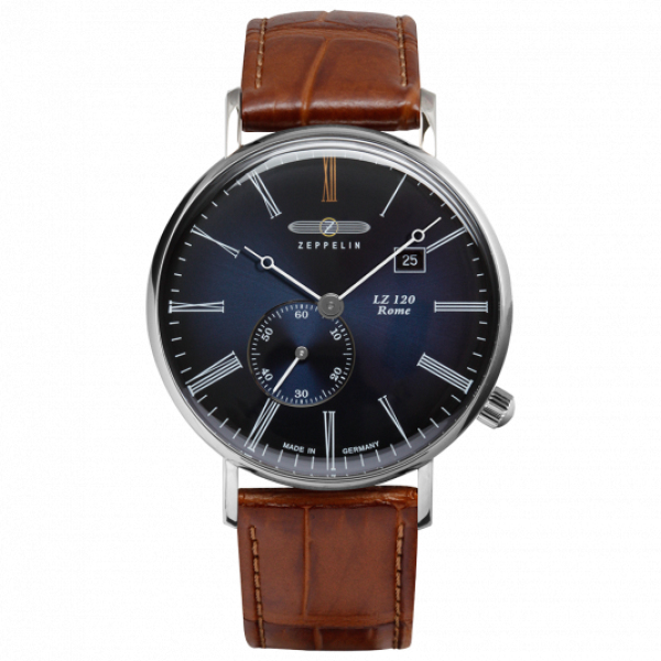 Férfi Zeppelin LZ 120 Rome karóra. Számlap: analóg Számlap anyaga: acél Számlap átmérője: 41 mm Óraüveg_ ásványi Vízállóság_ 5 ATM (zuhany) Szíj: barna bőr Óra meghajtó: elem Óramű: Kvarc analóg