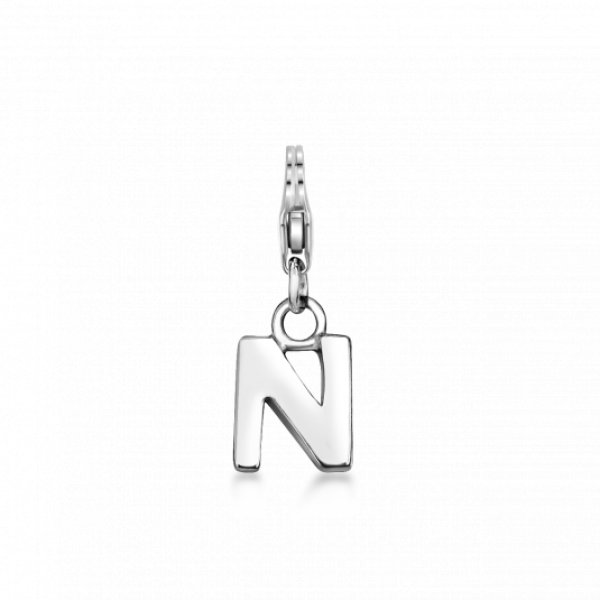 Ezüst charm medál az ábécé "N" betűje. A medál karabiner zárral rendelkezik és alkalmas a Charmie kollekció ékszereire. A medál mérete: 4 x 17 mm karabinerrel. Súly: 1 g.