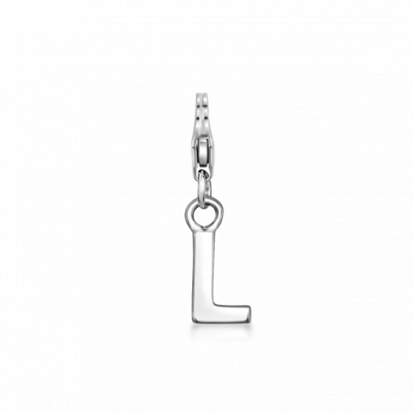 Ezüst charm medál az ábécé "L" betűje. A medál karabiner zárral rendelkezik és alkalmas a Charmie kollekció ékszereire. A medál mérete: 4 x 17 mm karabinerrel. Súly: 1 g.