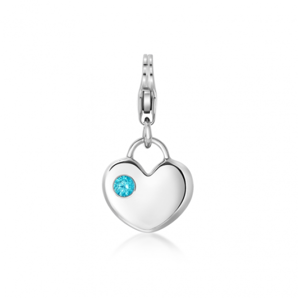Ezüst charm medál - szív kék cirkóniával. A medál karabiner zárral rendelkezik és alkalmas a Charmie kollekció ékszereire. A medál mérete: 11 x 21 mm karabinerrel. Súly: 2 g.