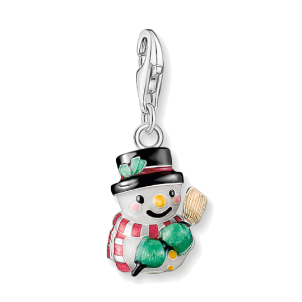 THOMAS SABO ezüst hóember charm medál vidám mosollyal, seprűvel, sállal, kesztyűkkel és sapkával nagyszerű karácsonyi ajándék vagy egy havas gyermekkor emléke. A medál karabineres zárással rendelkezik, és a Charmista kollekció ékszereihez alkalmas. Medál mérete: 8,5x 26 mm karabinerrel.