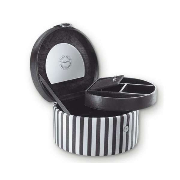 Thomas Sabo márkájú ékszerdoboz divatos fekete-fehér kivitelben. Az ékszerdoboz méretei: 15,5 x 9 x 13,5 cm.