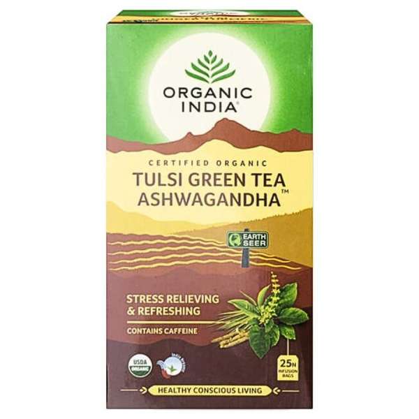 Összetevők: Zöld tea (Camelia sinensis) levél 40 %, Ashwagandha (Withania somnifera) gyökér 25,00 %, Krishna és Rama Tulsi (Ocimum sanctum) levél 16,00 %, Vana Tulsi (Ocimum gratissimum) levél 9,00 %, Citromfű (Cymbopogon citratus) levél 7,50 %, természetes citrom aroma 2,50 %
